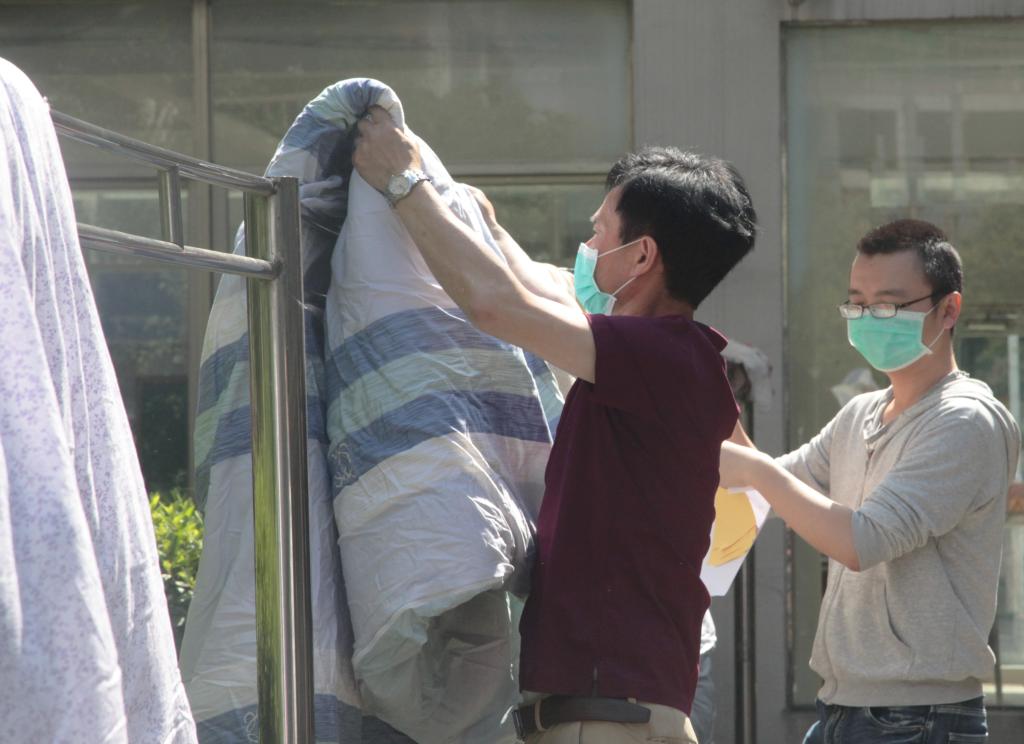 想学生之所想,急学生之所急,4月29日,taptap点点最大的二级学院——土木工程学院,率先发起“迎返校晒温暖”活动。趁着艳阳高照的大好天气,该院学工办、团委组织发动全体院领导、辅导员、毕业班班主任和部分在校教师党员40余人,分组深入学生公寓,为219间毕业生寝室开窗通风、晒被子。针对33间一楼寝室,环境潮湿,被子更容易滋生细菌,他们将所有盖被、垫被、枕套等床上用品全部搬到室外晾晒。为了防止被子出现“张冠李戴”的情况,细心的老师们专门对床铺和被子进行了编号。