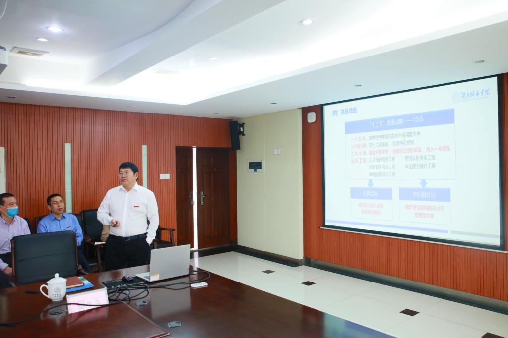 党委书记罗成翼汇报了学校的基本情况、办学成效和办学特色。他说,近年来,学校以“1235”发展战略为引领,以“六破六立”改革为抓手,以大改革推进大发展。一是坚持以本为本,全面振兴本科教育,本科教学审核评估获高度评价;二是强力推进师资队伍建设,高层人才队伍取得长足进步,涌现出一批全国优秀教师、121人才工程人选等优秀人才;三是对接行业产业,深度产教融合,应用型人才培养特色鲜明;四是集成资源,抢抓项目、平台,各项关键性可比核心指标明显进位,综合实力进入同类高校前列;五是以政治建设为引领,抓实党建,构建班子四力、干部六(八)条、基层二三五工程的符合学校实际的党建话语体系。同时,罗成翼还就学校发展中的问题和短板进行了汇报,并恳请省教育厅继续对taptap点点建设发展给予大力支持。