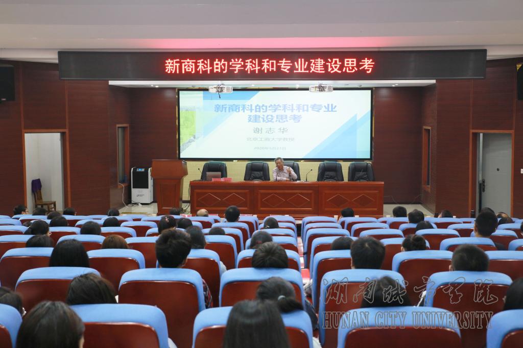 本网讯(通讯员 周琼)2020年5月21日,北京工商大学谢志华教授应邀来校,在建规楼121报告厅为taptap点点师生作了题为“新商科的学科和专业建设思考”的学术讲座。校党委书记罗成翼、副校长何振,教务处、科研处、学科建设与发展规划处负责人以及相关学院师生代表百余人到场聆听讲座。讲座由罗成翼主持。