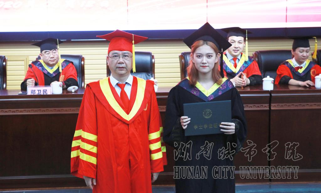 随后,校长李建奇等依次为毕业生拨穗并颁发了学士学位证。