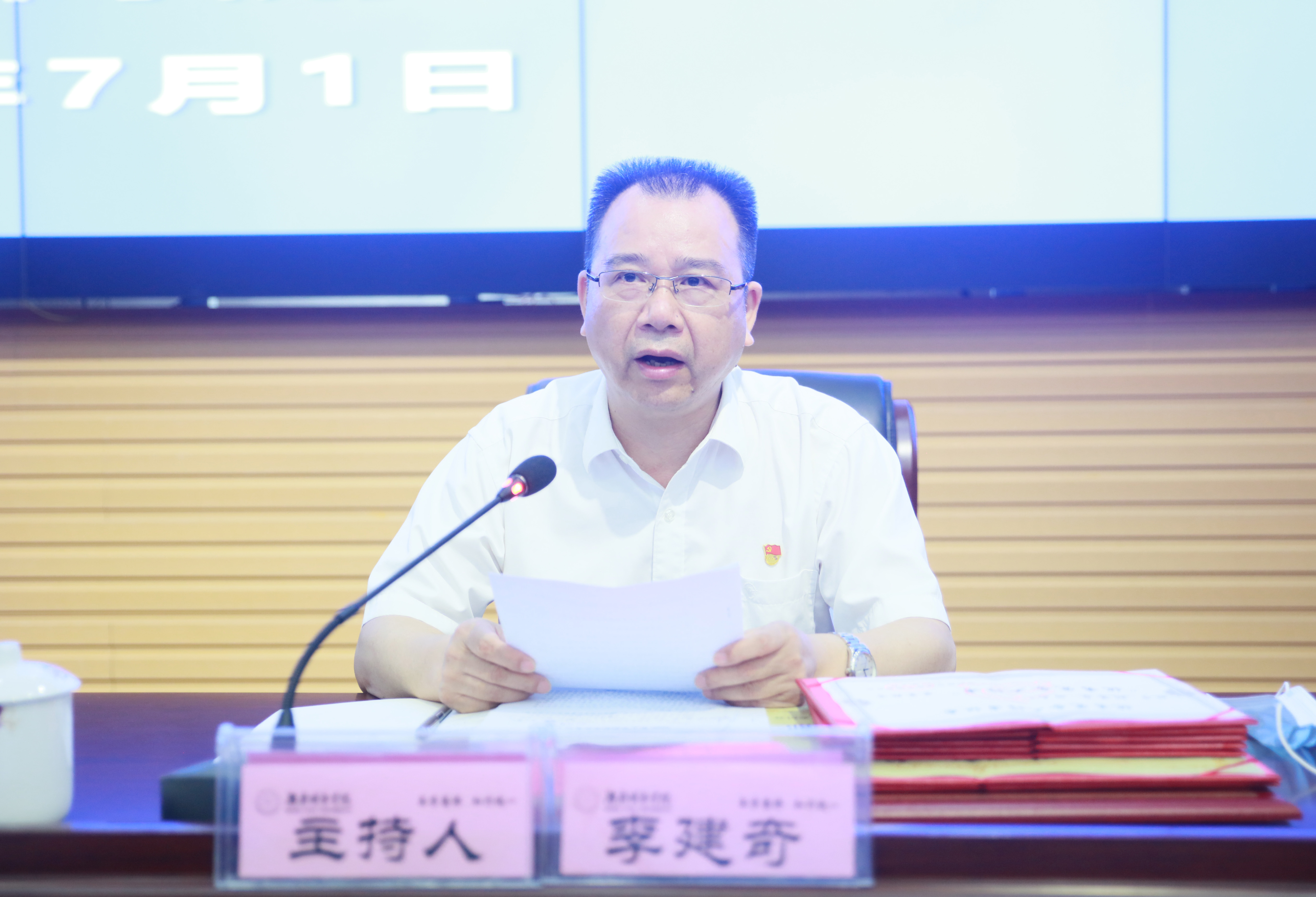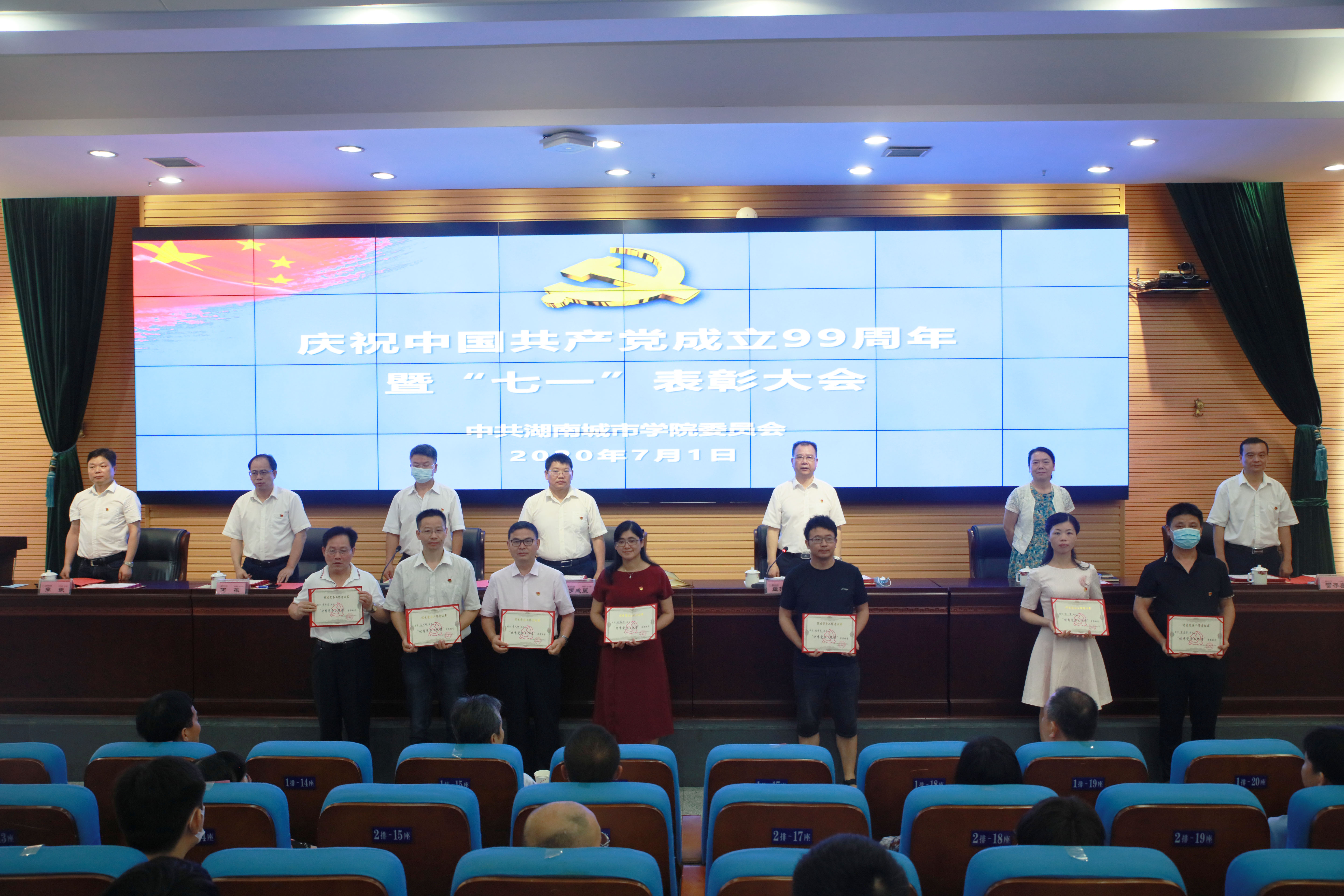 本网讯(通讯员 冷红)2020年7月1日上午,taptap点点庆祝中国共产党成立99周年暨“七一”表彰大会在逸夫图书馆报告厅举行,在家的校领导、受表彰对象、副处级以上党员领导干部、党支部书记代表参加会议。会议由党委副书记、校长李建奇主持。
