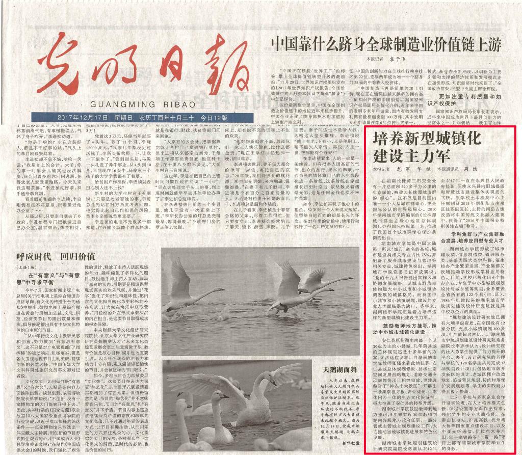 《光明日报》12月17日报道学校聚焦新型城镇化应用型人才培养。