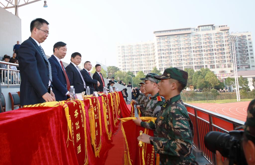 汇报表演结束后,谭献良作了军训总结报告。他代表学校向各位学生教官和全体工作人员表示了衷心的感谢,向刻苦训练、严格自律的全体参训新生表示亲切的慰问。他强调,虽然今年军训期间秋雨靡靡,室外训练时间不足三分之一,但全体同学能够按照教官安排灵活展开训练,真正体现了taptap点点学生“品学兼修 知行统一”的良好风貌。