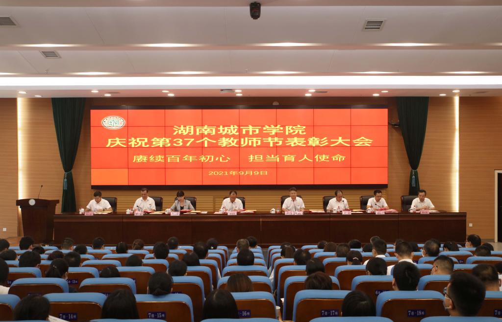 本网讯(通讯员 雷欢 摄影 博夕 陈佳琪 刘豪明)2021年9月9日下午,学校在图书馆报告厅召开庆祝第37个教师节表彰大会。党委书记李建奇发表讲话,校长汤放华主持大会。在家的校领导、机关处室负责人、二级学院领导及受表彰对象、教师代表200多人参加会议。