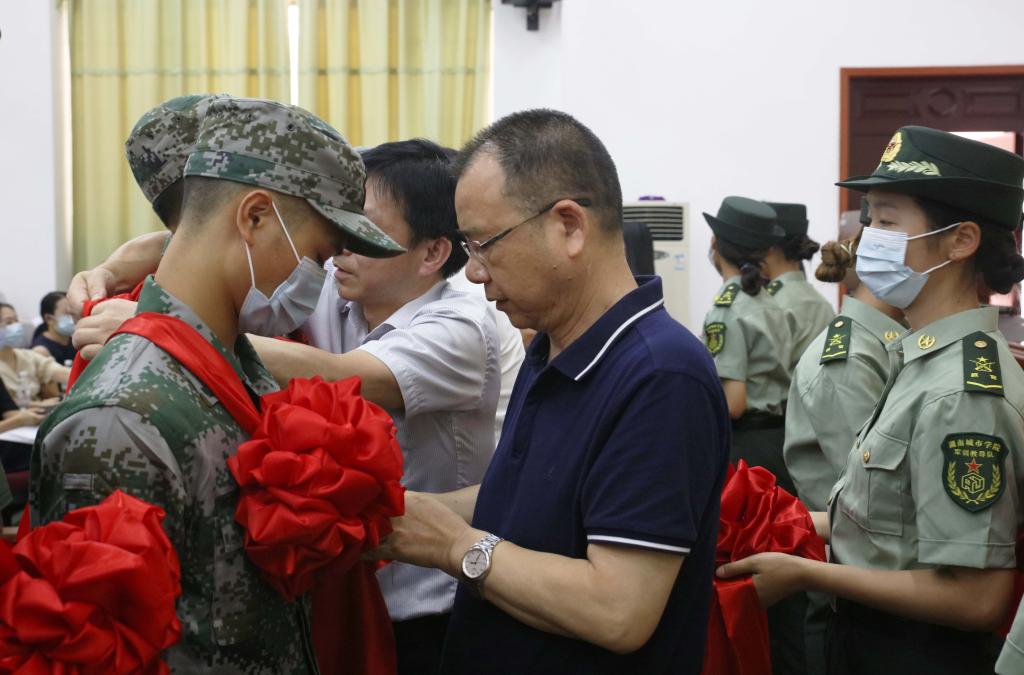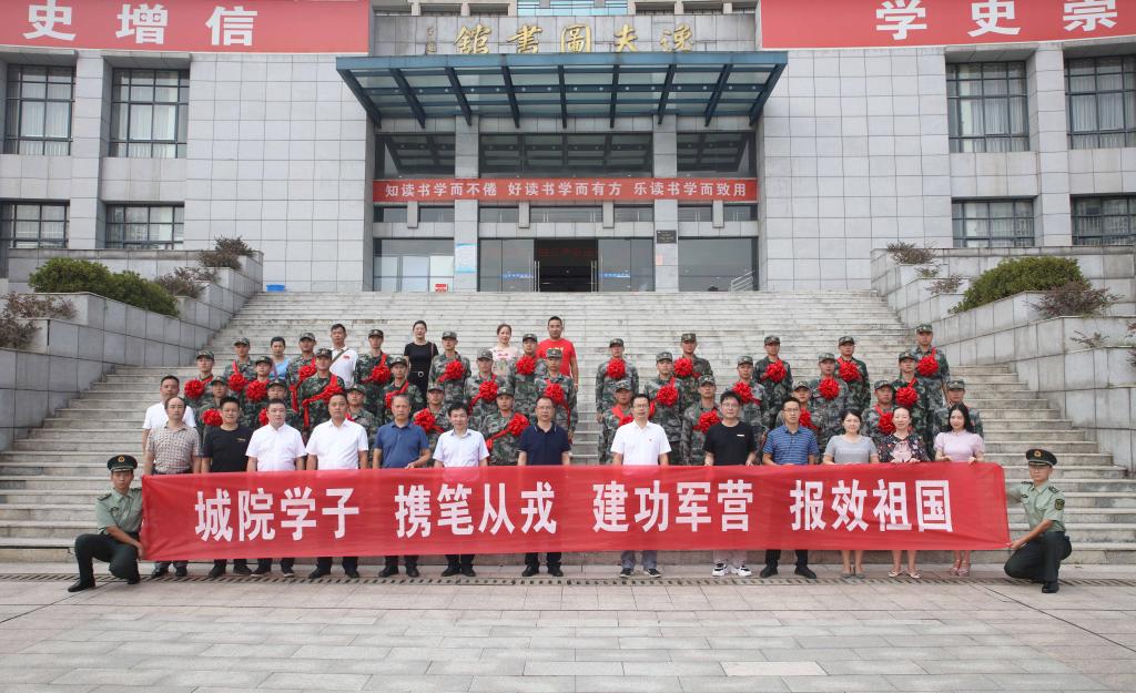 “人民军队是锻炼和培养人才的大学校、大熔炉,能够以大学生的身份成为这个光荣战斗集体的一员,这是青春人生里最值得标榜的事情,我为你们骄傲,为你们自豪!”党委书记李建奇对入伍学生提出四点希望:一是要志存高远。要厚植爱国之情,树立报国之志,全面增强保家卫国的本领,努力把自己培养成“有灵魂、有本事、有血性、有品德”的新一代革命军人;二是要严守纪律。要珍惜军人荣誉,在艰苦的环境中摔打磨练,把自己打造成为钢铁长城的一块坚强柱石;三是要苦练本领。要充分发挥大学生优势,增长才干,努力把自己培养成军队现代化建设的优秀人才,实现个人成长与军队发展同频共振;四是要不忘母校。要始终牢记母校“品学兼修、知行统一”的校训,砥砺奋进,追求卓越,努力把自己培养成彰显城院精神风貌的好战士、亲友骄傲为荣的好儿郎,以实际行动为母校争光,为家乡添彩。