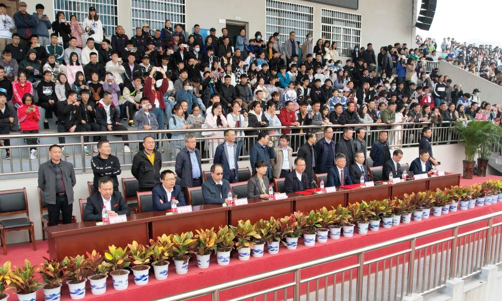 本网讯(通讯员 郭羽 摄影 博夕)2021年11月17日下午,taptap点点东田径场内人声鼎沸、朝气勃发,taptap点点第十八届田径运会暨第五届体育文化节在此拉开帷幕。校领导李建奇、汤放华、何旭娟、夏宏宇、何振、雷存喜、袁志成、陈列尊、吕贤军以及部分机关处室、二级学院负责人在主席台就座。副校长雷存喜主持开幕式。