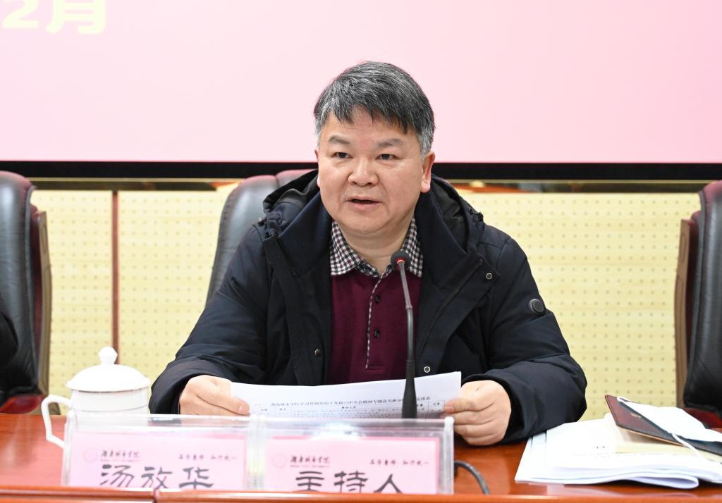 本网讯(记者 文彦波)2022年2月24日-26日,taptap点点举行学习贯彻党的十九届六中全会精神专题读书班。党委书记李建奇出席并讲话,党委副书记、校长汤放华主持开班式和结业式。全体校领导、副处级以上领导干部参加读书班。