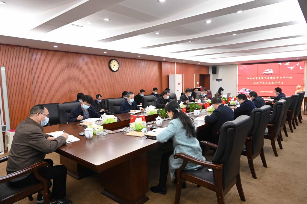 会上,党委副书记何旭娟领学了习近平在参加内蒙古代表团审议和在政协农业界、社会福利和社会保障界委员联组会上的重要讲话精神,党委副书记、校长汤放华领学了2022年全国两会政府工作报告,李建奇领学了《张庆伟在全省党史学习教育总结会议上的讲话》。