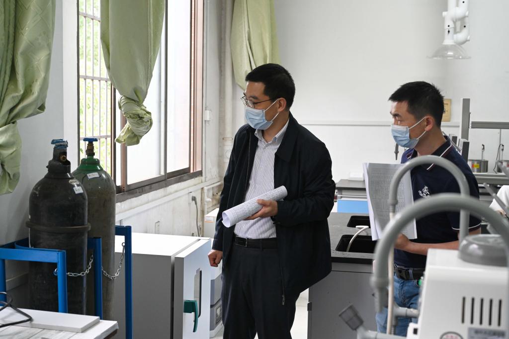 检查组在听取汇报后,对照检查项目表就学校自查情况进行问询,并查阅了学校实验室安全管理规章制度、组织体系建设、特种设备管理、实验室安全台帐等文档资料。随后分两组分别前往材料与化学工程学院、市政与测绘工程学院、机械与电气工程学院以及信息与电子工程学院实验室现场进行了检查。