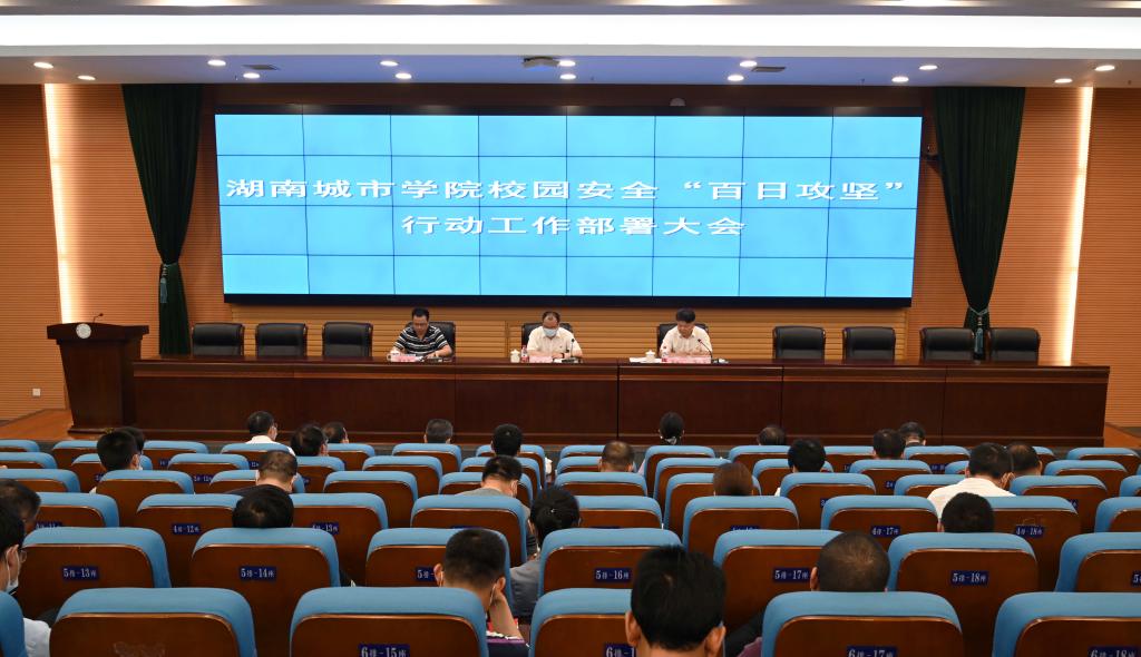 本网讯(供稿:保卫处)2022年6月1日下午,学校在图书馆报告厅召开2022年校园安全“百日攻坚”行动工作部署大会。校党委书记李建奇出席会议并讲话,副校长袁志成对“百日攻坚”行动相关工作作具体部署,会议由校长汤放华主持。