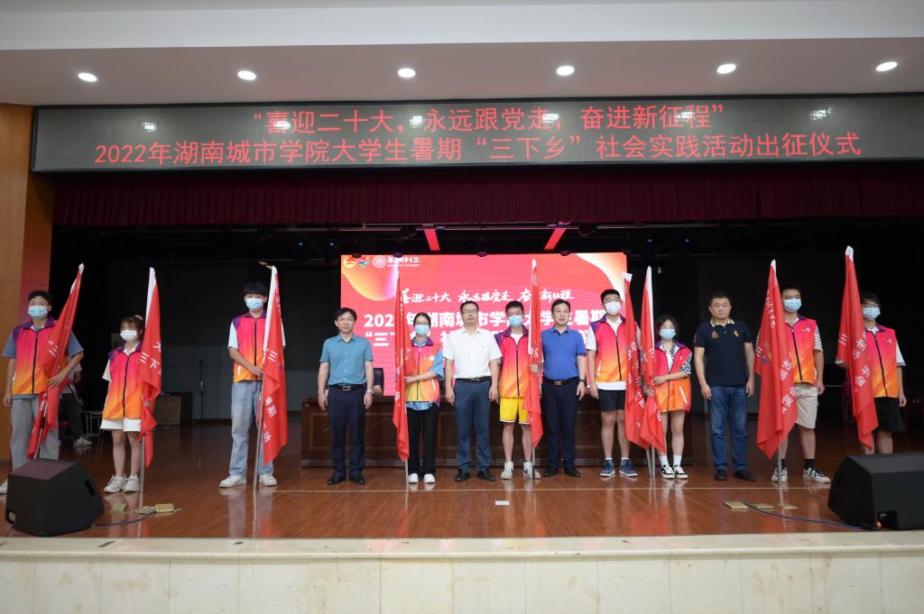 本网讯(通讯员 李琳)6月22日上午,taptap点点在学生活动中心举行2022年“喜迎二十大,永远跟党走,奋进新征程”暑期“三下乡”社会实践活动出征仪式。副校长袁志成,党委宣传部、学生工作部、招生就业处相关负责人,各学院团委书记、各校级立项团队指导教师以及2022年暑期“三下乡”社会实践活动团队成员共计200余人参加了出征仪式。
