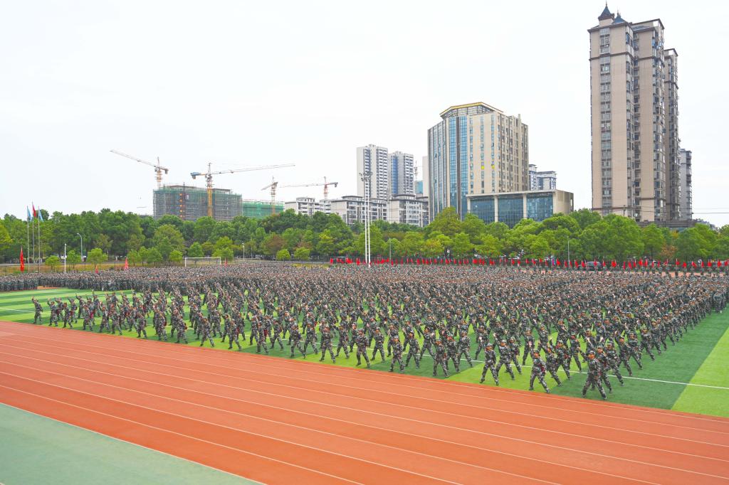 新生方队分列式表演。