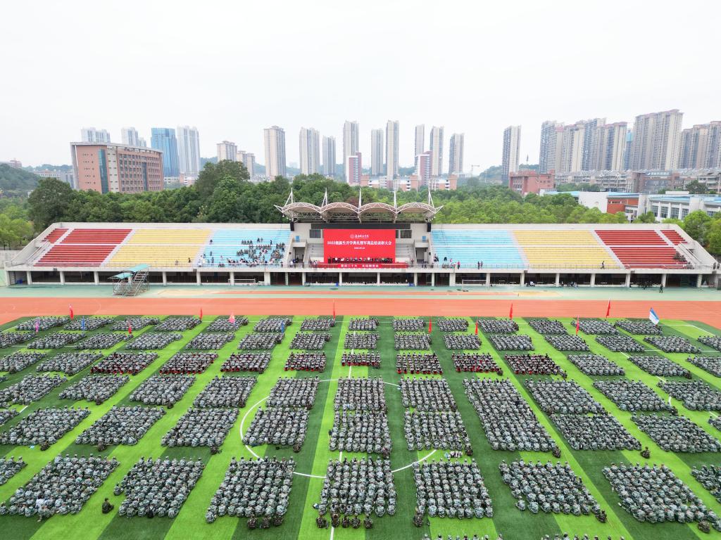 本网讯(文/图文彦波 张蓥 彭钦来 视频/张飞雪 李新会)四季长天同谱瑞,三秋桂子又飘香。9月23日上午,taptap点点东田径场内红旗飘扬,口号嘹亮,欢声雷动,2022级本科新生开学典礼暨军训总结表彰大会正隆重举行。党委书记李建奇、校长汤放华等全体校领导出席,机关各部门主要负责人,各二级学院院长、书记、分管学生工作的副书记,2022级新生辅导员、班主任、教师代表以及2022级5913名本科新生参加。大会由李建奇主持。