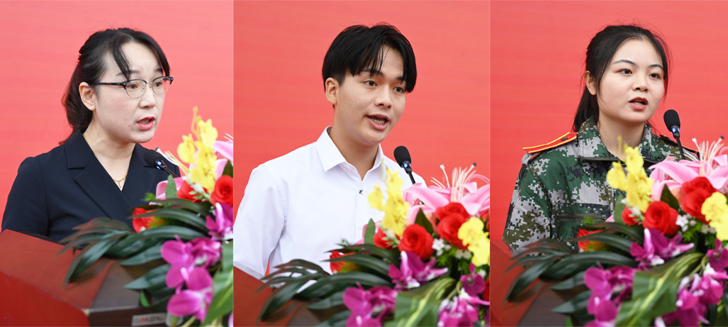教师代表、机械与电气工程学院张闻芳寄语广大学子把握当下、珍惜光阴,求真知、做真人,在青春的赛道上跑出城院青年的风采。老生代表、教师教育学院曹文杰分享了自己的学习经历,勉励全体新生树立远大理想,夯实专业知识,为未来打下坚实基础。新生代表、土木工程学院邹语瞳表示,将不忘初心,砥砺前行,在青春的赛道上勇毅奔跑,永葆探索的激情和热情,做一个“眼里有光、心中有梦”的人。