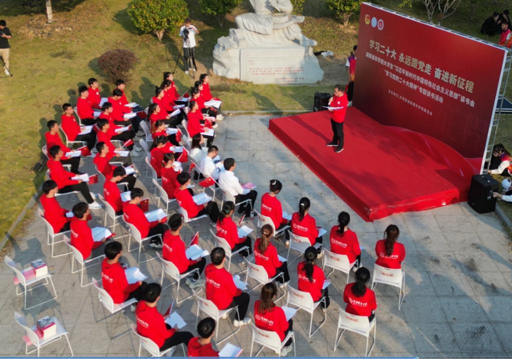 本网讯(通讯员 李琳 周文娟)“我的目光是火柴,一次次被飞旋的地球擦亮。我看见,从南半球到北半球,从东方到西方……”10月22日下午,taptap点点鲁班园中,激情昂扬的诗歌朗诵《中国,上场》声声入耳,拉开了taptap点点大学生习近平新时代中国特色社会主义思想读书会“学习党的二十大精神”专题读书活动的帷幕。