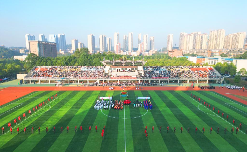 随后,四位旗手手执鲜艳的五星红旗带领校旗方阵、校训方阵、红旗方阵、裁判员方阵、志愿者方阵,伴随着激昂的运动员进行曲依次入场,14个二级学院代表方阵先后表演了热情似火、节奏明快的节目,以不同的形式展现青春风采,为全校师生带来朝气蓬勃的视觉盛宴。