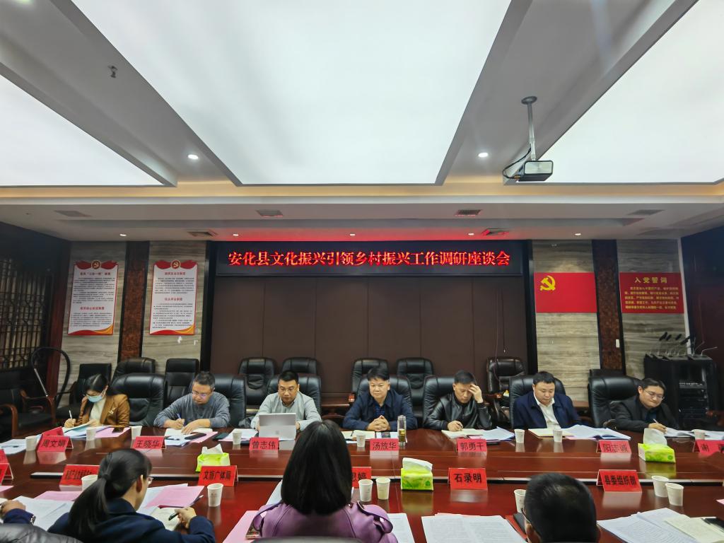 安化县文领办相关负责人作了安化县文化振兴引领乡村振兴工作情况汇报,从着力夯实新基础、全力谋划新模式、打造引领新标志等几个方面详细介绍了安化县在探索文化振兴引领乡村振兴“安化模式”的做法和成效。