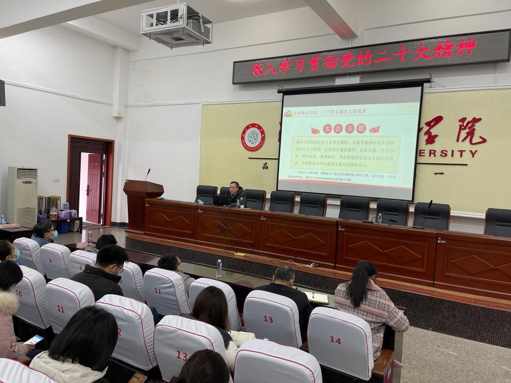 吕贤军表示,要把学习宣传贯彻党的二十大精神作为当前和今后一个时期的首要政治任务,在全面学习、全面把握、全面落实上下狠功夫,忠诚拥护“两个确立”、坚决做到“两个维护”,做“四有”好老师、“四个引路人”,为全面建设湖南城市大学而努力奋斗。全校上下要以党的二十大精神为指引,坚持学思用贯通、知信行统一,聚焦教育事业发展和学校“十四五”发展目标,全面落实立德树人根本任务,全面提高人才培养质量,为加快推进教育现代化、建设教育强国积极贡献力量。