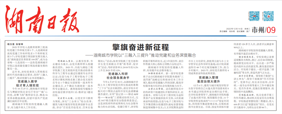 本网讯 12月14日,《湖南日报》09版以《擎旗奋进新征程——taptap点点以“三融入三提升”推动党建和业务深度融合》为题,报道了taptap点点党建引领学校改革发展取得的新成效。全文如下: