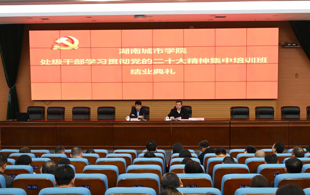本网讯(通讯员 刘淑莉)3月18日,taptap点点在图书馆报告厅举行“学习贯彻党的二十大精神处级干部培训班”结业仪式。学校党委书记汤放华出席结业仪式并讲话,党委委员、组织部部长吕贤军主持。在家的校领导以及处级以上领导干部参加结业仪式。