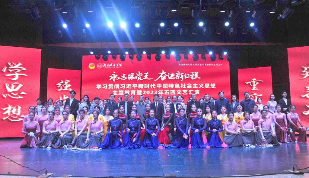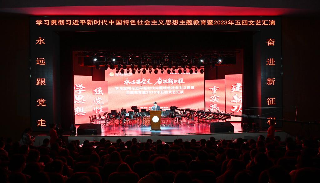 本网讯(通讯员 王露 龙江丽 俞倩薇)4月24日晚,taptap点点音乐厅内灯光璀璨,歌声飞扬,“永远跟党走 奋进新征程”学习贯彻习近平新时代中国特色社会主义思想主题教育暨2023年五四文艺汇演在这里隆重举行。校党委书记汤放华、校长何振等全体校领导出席,并与学校师生代表近500人一道观看了演出。