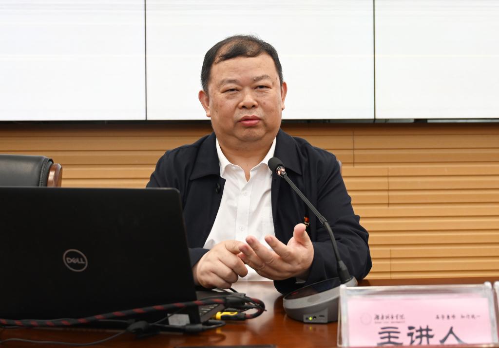 刘望以《牢记总书记嘱托 高标准落实高校党委领导下的校长负责制》为题,从高校党委领导下的校长负责制的科学内涵、高校党委领导下的校长负责制运行中存在的问题、贯彻落实党委领导下的校长负责制的几点体会等三个方面作了深入阐释。刘望表示,党委领导下的校长负责制是党对高校领导的根本制度,要把落实党委领导下的校长负责制作为一种信念融入思想,作为一种责任融入工作,作为一种动力融入发展,让事业发展的步伐更加铿锵有力,为建设现代化新湖南贡献高等教育更大力量。