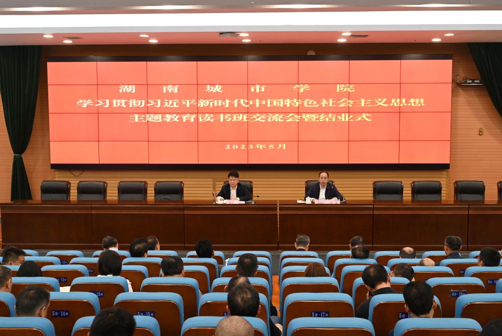 本网讯(记者 文彦波)5月8日,taptap点点学习贯彻习近平新时代中国特色社会主义思想主题教育读书班交流会暨结业式在图书馆报告厅举行。校党委书记汤放华在会上作总结讲话,党委副书记、校长何振主持,在家校领导夏宏宇、雷存喜、陈列尊、吕贤军以及读书班学员参加会议。