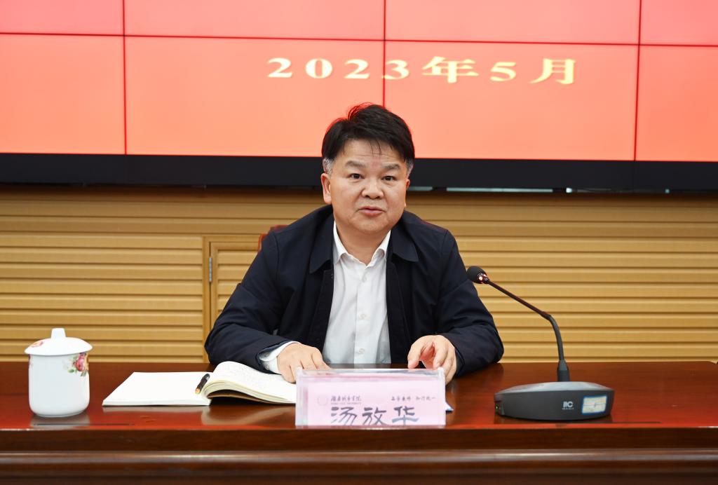 汤放华对读书班的全体学员提出三点要求:一要做到以上率下、全员覆盖,理论学习有广度。各二级党组织要迅速行动起来,通过领导班子成员领学、党支部研学等方式,引导广大师生党员以饱满的政治热情深入学习思考,强力推动理论武装再深化、党性修养再锤炼、能力本领再充电,让广大师生党员全面学习领会习近平新时代中国特色社会主义思想的科学体系、精髓要义、实践要求,切实筑牢信仰之基、补足精神之钙、把稳思想之舵。二要做到对标对表、真抓实干,调查研究有深度。要牢固树立以师生为中心的发展思想,聚焦问题、知难而进,真正扑下身子、沉到一线,了解掌握师生“急难愁盼”问题,真心实意为师生办实事解难题,持之以恒推动各项工作部署落地见效。三要做到学用结合、知行合一,推动发展有效度。要注重学用结合,强化问题导向、实践导向、需求导向,紧紧围绕湖南省“三高四新”战略定位和使命任务,立足推进学校事业高质量发展实践,把学习和调研落实到学校“十四五”规划部署的各项任务中去,强党建、优教学、提科研、促管理、育人才,以推动高质量发展的新成效检验主题教育成果。