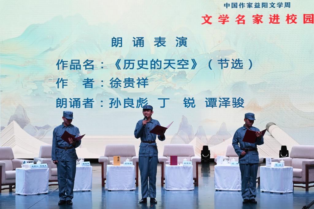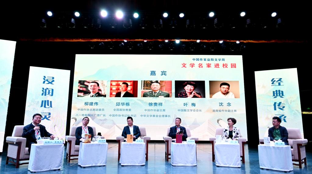 全国政协常委、中国作协书记处书记邱华栋出席活动并讲话。中国作协副主席徐贵祥,中国散文学会会长叶梅,中国作协主席团成员、八一电影制片厂原厂长柳建伟,湖南省作协副主席沈念等出席活动。校党委书记汤放华,益阳市委常委、宣传部部长陈计伟,益阳市副市长邓曙光以及师生代表等400余人参加活动。