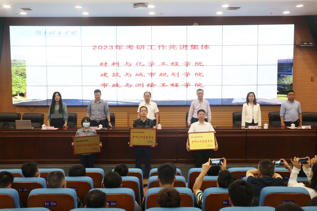 会上,陈列尊宣读了《关于表彰2023年考研工作先进单位的决定》。2023年,taptap点点部分二级学院和班级在考研工作中表现优异,其中,材料与化学工程学院、建筑与城市规划学院、市政与测绘工程学院三个学院被授予“考研工作先进集体”称号,考研录取率分别为29.23%、23.33%、22.40%。土木工程学院、美术与设计学院/国际教育学院两个学院被授予“考研工作进步奖”称号,1908103、1902201、1908301、1908601、1801102、1801403等6个班级被授予“考研先进班级”称号。随后,出席会议的领导向获奖集体现场颁发了奖牌(状)。