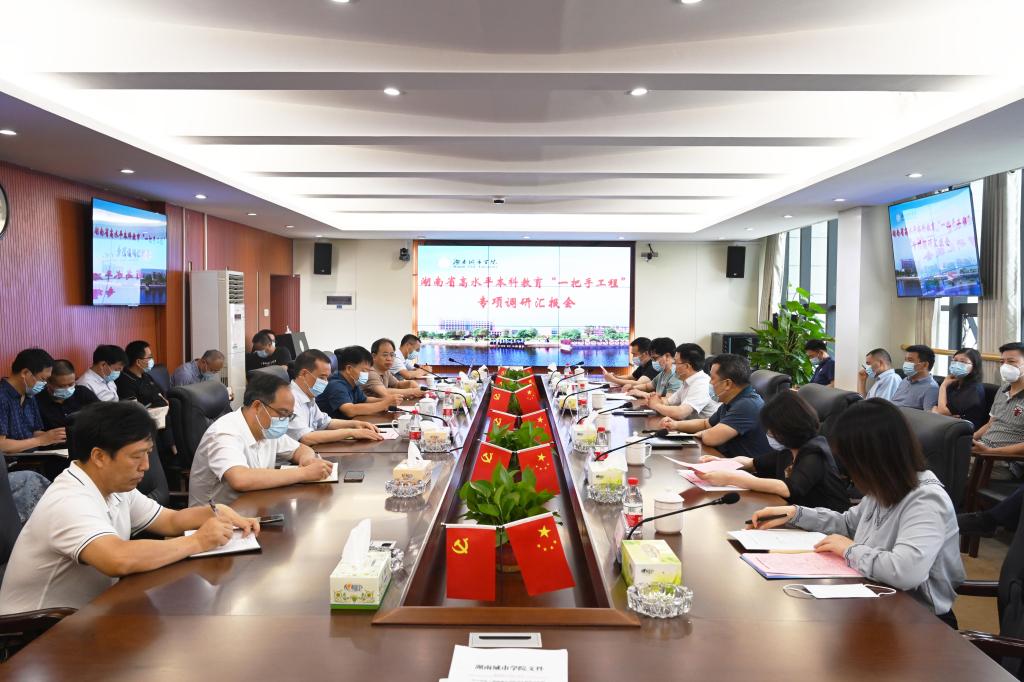 本网讯(通讯员 向博毅)5月31日,湖南省高水平本科教育“一把手工程”专项调研专家组一行来taptap点点调研,学校在一办公楼一会议室召开工作汇报会。专家组组长、吉首大学副校长冷志明和专家组成员,校党委书记汤放华,校长何振,副校长雷存喜出席,相关职能部门主要负责人和二级学院院长参加。会议由何振主持。