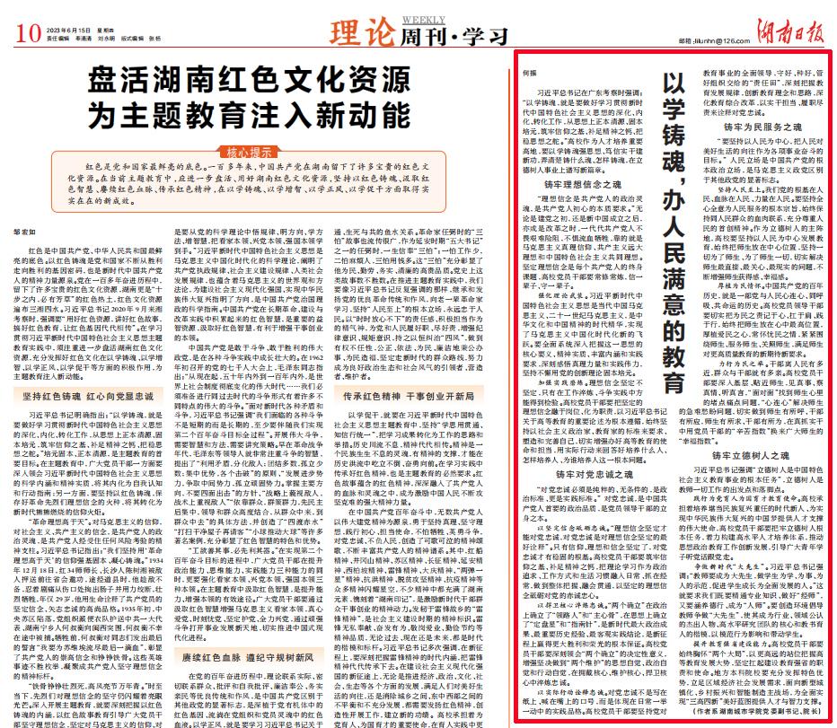 本网讯 6月15日,《湖南日报》10版“理论周刊·学习”刊发taptap点点校长何振署名文章《以学铸魂,办人民满意的教育》,全文如下: