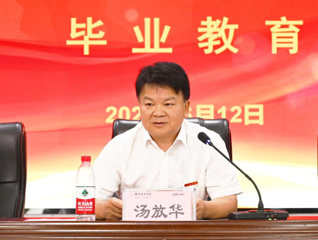 汤放华在总结讲话中强调,大家在校求学的这六年是极不平凡的,从国家层面来看,党的十九大和二十大胜利召开,全国人民通过了新冠疫情的“大考”,脱贫攻坚战取得全面胜利;从学校层面来看,学校本科教育建设水平不断提高,办学实力不断增强;从学生个人层面来看,大家通过扎实苦学、积极进取,取得了优异的成绩,获得了全面的成长。对即将走上教学岗位的2023届公费师范生,汤放华提出三点殷殷期待:一是心怀“国之大者”,做堪当民族复兴重任的时代新人;二是心怀“德之厚者”,做有情怀大爱的“好老师”;三是心怀“学之乐者”,做爱学善学乐学的“好老师”。