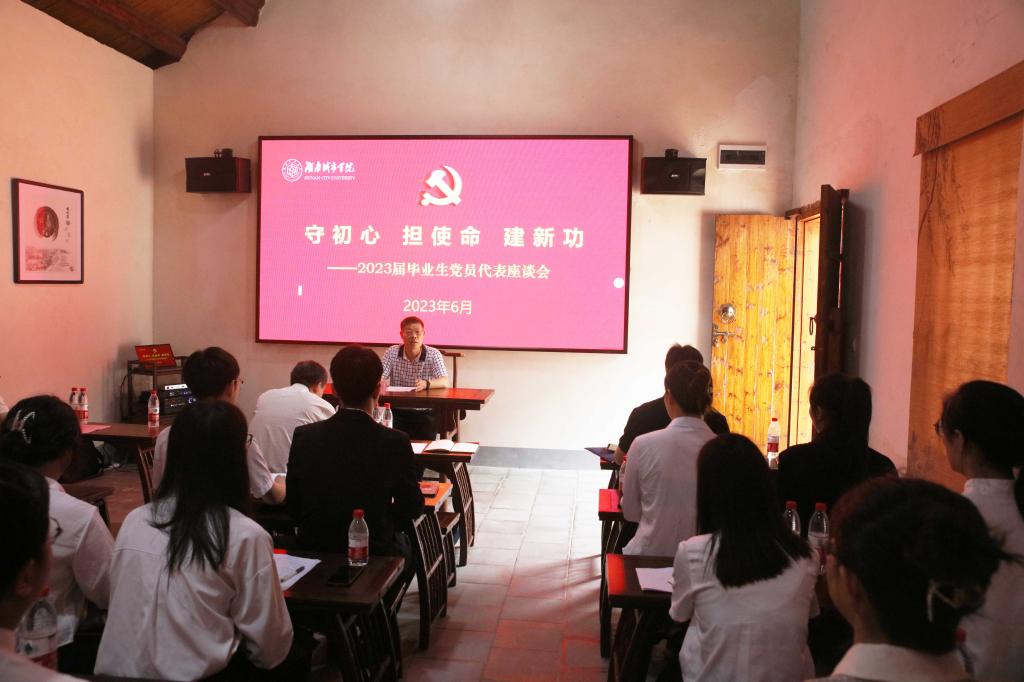 吕贤军作总结发言。他祝贺全体毕业生党员圆满完成学业、开启人生新的征程,并对他们提出三点要求:一要坚定理想信念,做到对党绝对忠诚。要以学习贯彻习近平新时代中国特色社会主义思想主题教育为契机,深刻领悟“两个确立”的决定性意义,努力做到“两个维护”,把对党忠诚体现到贯彻落实好党中央决策部署的实际行动上。二要勇于自找苦吃,做到主动担当作为。要胸怀国之大者,砥砺报国之志,积极投身于国家新型城镇化战略、乡村振兴战略、智能制造战略主战场,服务“三高四新”美好蓝图,用脚踏实地的不懈奋斗绘就亮丽的青春画卷。三是讲规矩守底线,做到率先清正廉洁。要牢固树立党章党规党纪意识,做到守纪律、讲规矩,知敬畏、存戒惧,永远保持共产党人忠诚、干净、担当的政治本色。