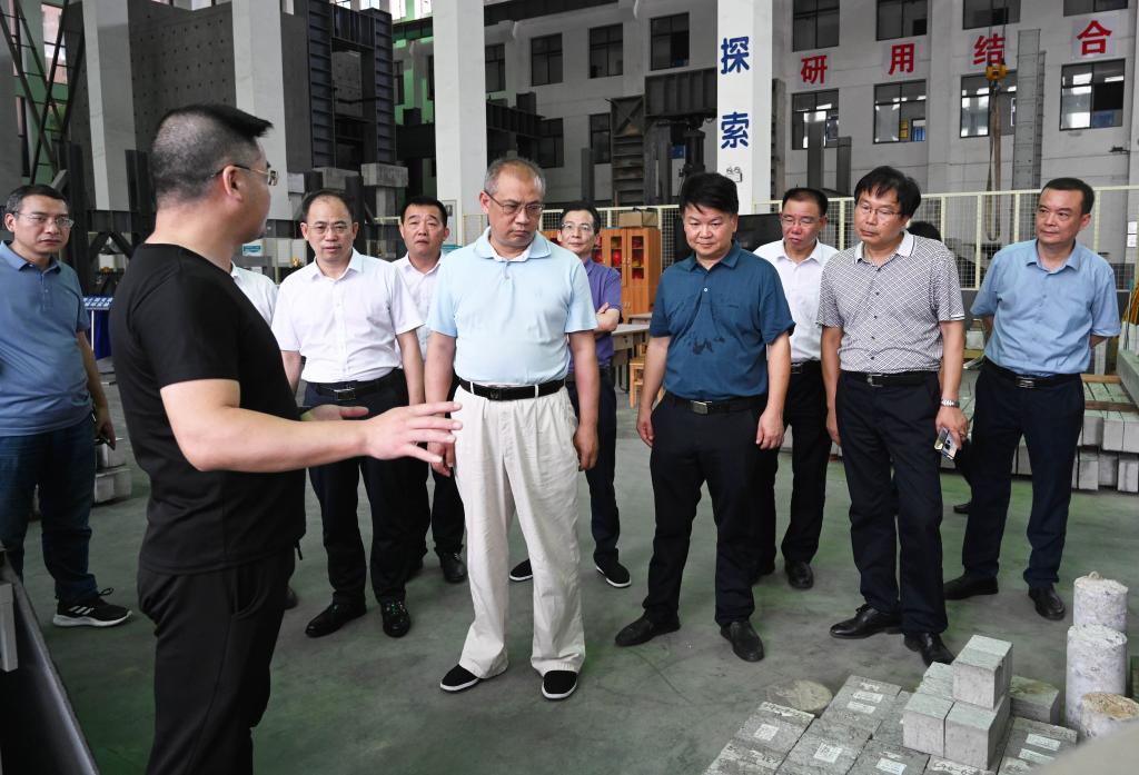 潘碧灵一行参观了taptap点点土木工程国家级实验教学示范中心(以下简称“中心”)。该中心负责人介绍了中心的基础条件及所取得的成绩,中心合作伙伴、湖南华信陶粒科技有限公司技术负责人汇报了双方合作开展的页岩陶粒混凝土研发项目,介绍了页岩陶粒混凝土的力学性能、应用前景及目前正在进行的试验研究等。潘碧灵表示,页岩陶粒混凝土具有良好的应用前景,希望校企合作进一步加强合作,为地方经济社会发展做出更多贡献。