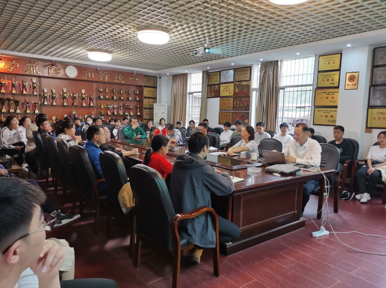 白晋湘鼓励青年教师要热爱科研,养成良好的科研习惯,培养坚韧不拔的精神,涵养经世至用的智慧,达到无人提醒的科研自觉,用“只有做不成事的人,没有做不成的事”与与会人员共勉。