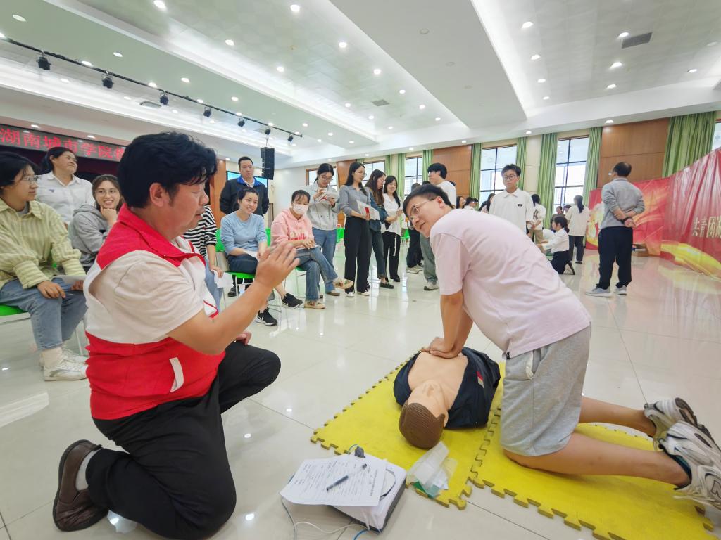 本网讯(通讯员 孔军)“正确的心肺复苏术实施步骤需要30次按压、2次人工呼吸交替进行,并保持每分钟100至120的频次和每次5至6厘米的按压深度……10月24日,在学校学生活动中心,taptap点点80余名师生现场接受了益阳市红十字会紧急急救培训和心脏除颤仪(AED)使用培训。