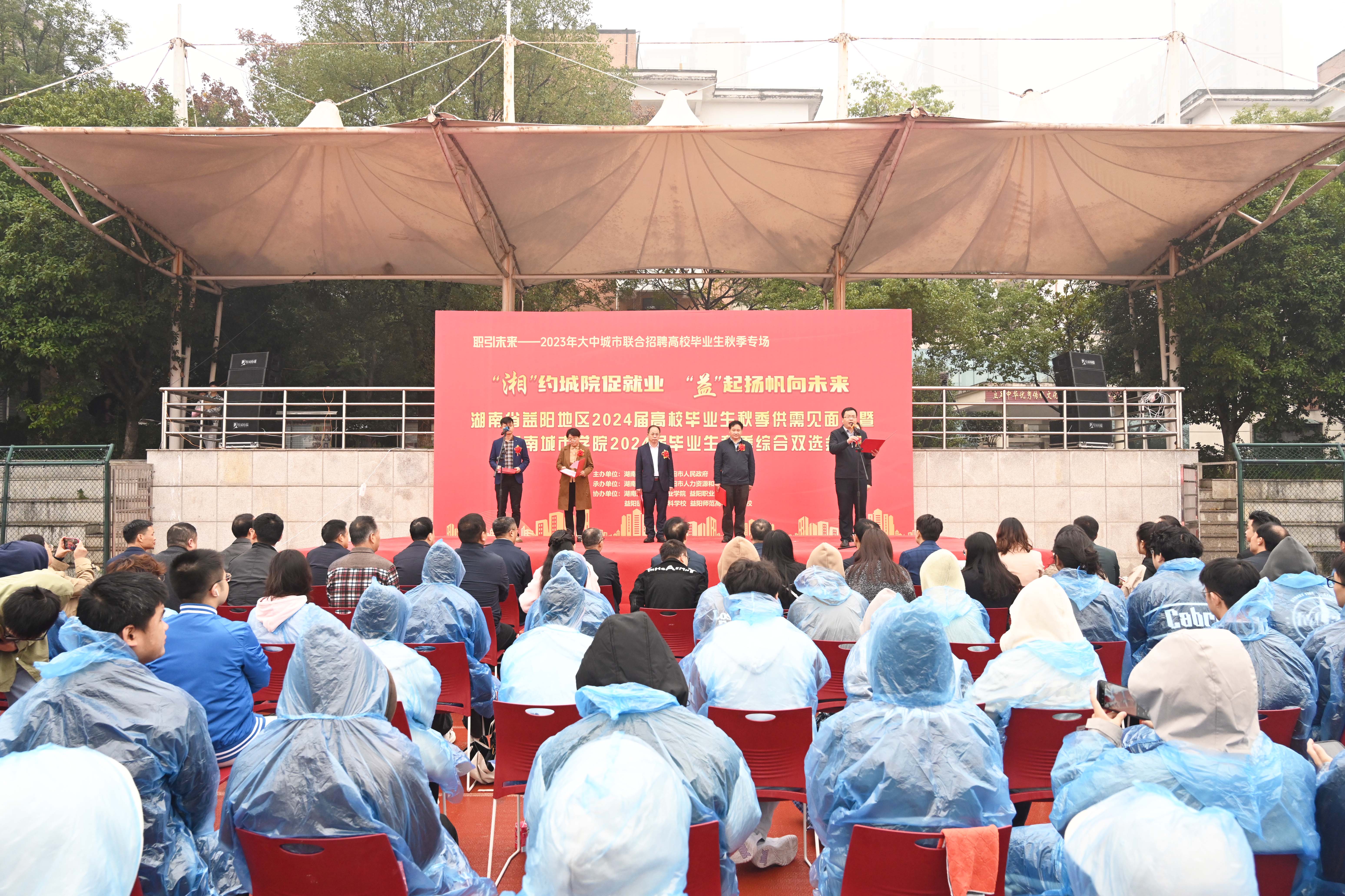 开幕式由副校长袁志成主持。校长何振致辞欢迎,他代表学校向莅临本届双选会的领导嘉宾表示诚挚欢迎和衷心感谢,并介绍了学校的就业基本情况。他表示,此次综合双选会,是深入学习贯彻党的二十大精神,积极推进就业创业“一把手工程”的有力举措。希望各位毕业班同学认清形势、转变观念、调整心态、把握机遇,加倍珍惜招聘单位提供的就业机会。学校将加大投入,努力把益阳片区市场建设成为学生就业创业的可靠平台,积极带动益阳地区高校毕业生高质量充分就业。