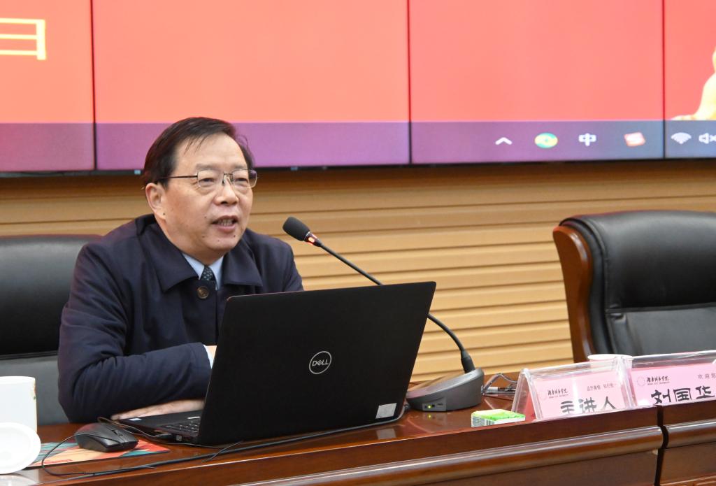 刘国华以“以党的二十大精神武装头脑 打好意识形态领域阵地战”为题作了辅导报告,从“千奇百怪怎么看”“斗争态势怎么判”“敌人正在怎么干”“我们应该怎么办”四个方面,结合当下国内国际局势和高校意识形态工作实际,深刻剖析了意识形态工作的重要性、当前意识形态领域情形的复杂性、形势的严峻性和斗争的激烈性。他表示,打好意识形态领域阵地战,需要做好以下五个方面工作:一要坚持马克思主义指导地位,掌握领导权;二要弘扬社会主义核心价值观,唱响主旋律;三要传承中华优秀传统文化,树立自信心;四要强化抵制错误思潮责任感,增强敏锐性;五要加强网络建设和监管工作,掌握话语权。