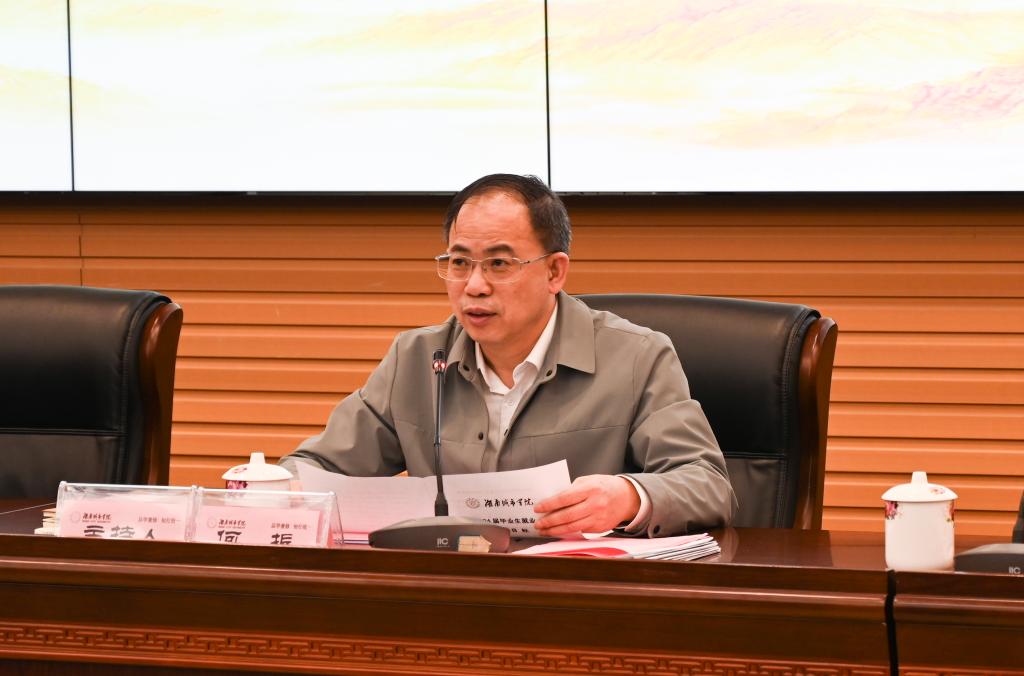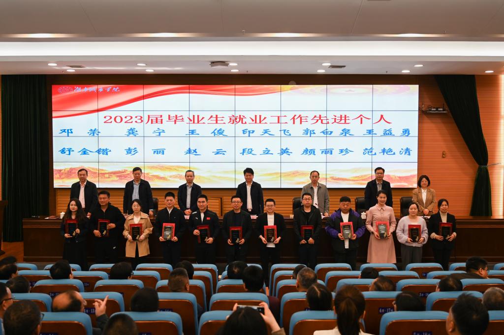 党委副书记袁志成宣读了《关于表彰2023届毕业生就业工作先进集体和先进个人的决定》。2023届毕业生就业工作先进单位代表土木工程学院党委副书记黄智和先进个人代表人文学院辅导员范艳清分别在会上分享就业工作经验。
