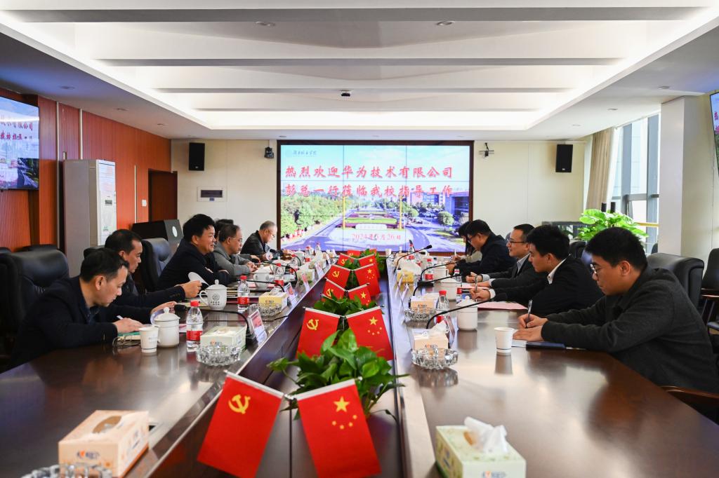 会上,汤放华致欢迎辞,他对彭军一行的到来表示热烈欢迎,并简要介绍了学校近年来的改革发展情况。汤放华指出,学校党委行政高度重视与华为技术有限公司的合作,希望双方在建设智慧校园、联合技术攻关、共同培养人才等方面,开展广泛而深入的探索合作,助推双方高质量发展。