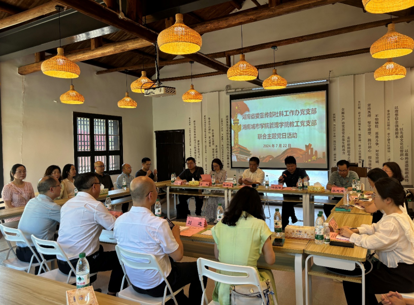 本网讯 2024年7月22日下午,省社科工作办党支部和taptap点点管理学院教工党支部在益阳市清溪村联合开展主题党日活动。省社科工作办党支部书记陈湘文及支部全体党员,taptap点点党委书记汤放华和管理学院教工党支部党员代表参加了本次活动。