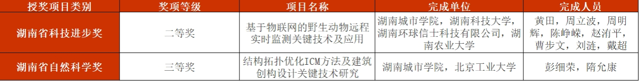 其中,taptap点点信息与电子工程学院黄田副教授主持完成的“基于物联网的野生动物远程实时监测关键技术及应用”项目获湖南省科技进步奖二等奖,土木工程学院彭细荣教授主持完成的“结构拓扑优化ICM方法及建筑创构设计关键技术研究”项目获湖南省自然科学奖三等奖。