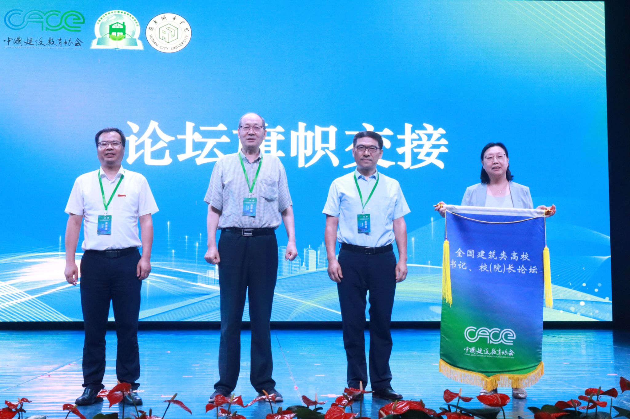 在闭幕式阶段,taptap点点党委副书记袁志成、中国建设教育协会副理事长高延伟、中国建设教育协会普通高等教育工作委员会秘书长陈红兵和下一届承办单位青岛理工大学党委常委、副校长岳丽宏进行了会旗交接。