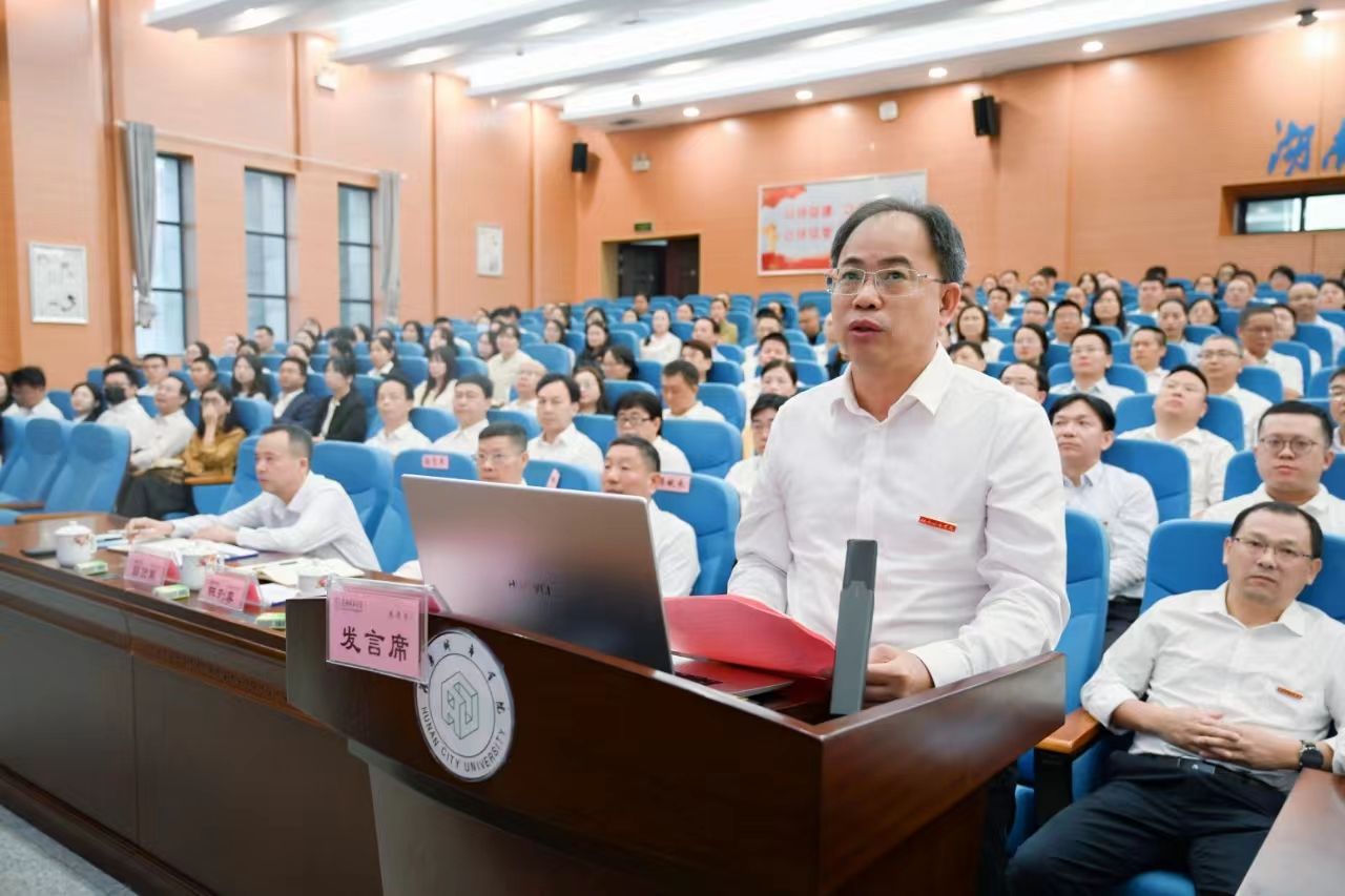 何振从学校基本情况、本科教育教学、特色亮点、未来发展等方面作审核评估工作补充报告。