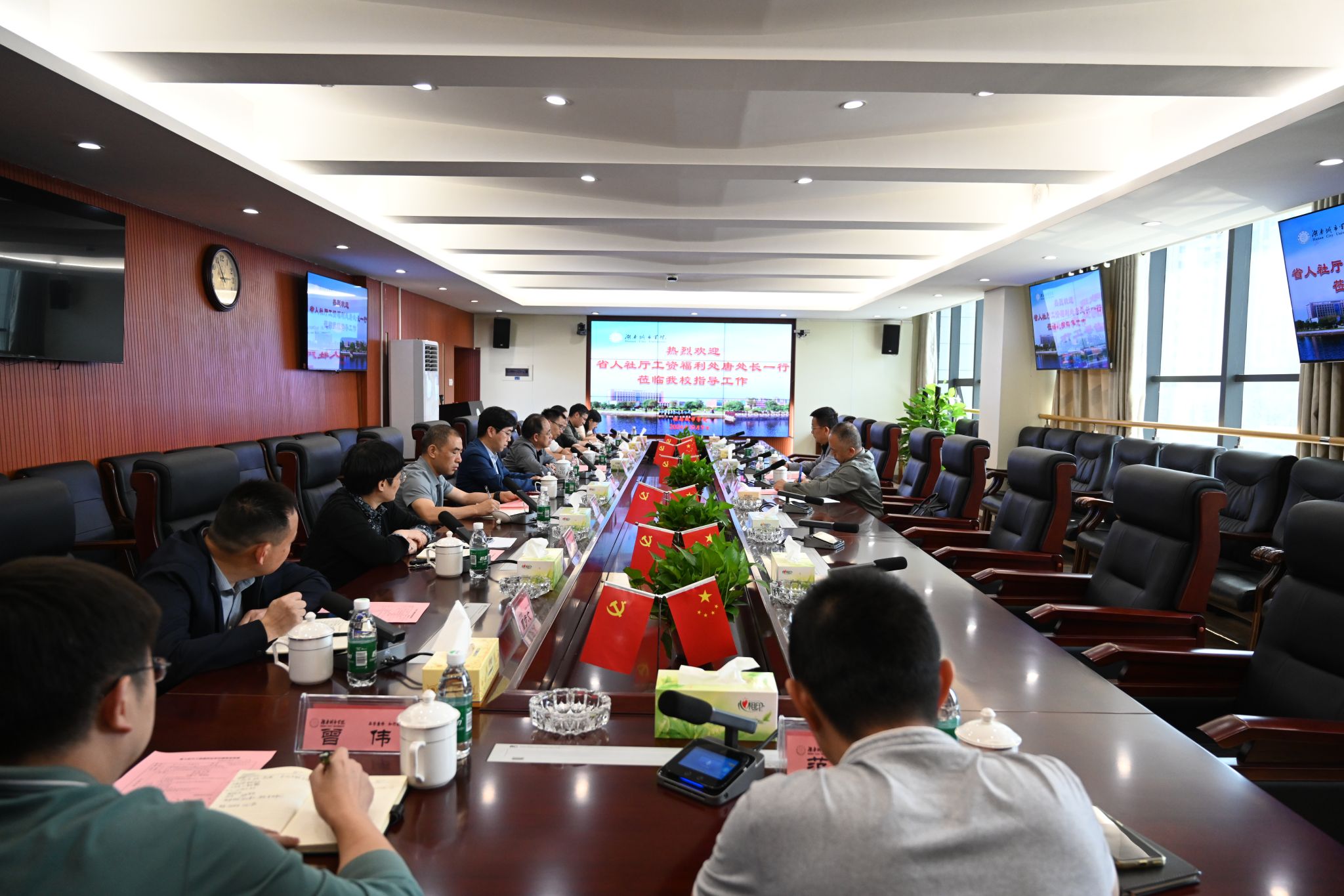 本网讯(通讯员 范吉文)10月9日下午,湖南省人社厅工资福利处处长唐西游,副处长蒋志勇来taptap点点考察,就教职工工资收入分配工作情况进行交流座谈。校长何振,党委副书记袁志成出席,学校人事处、计划财务处、科研处、教务处相关负责人参加。座谈会由袁志成主持。