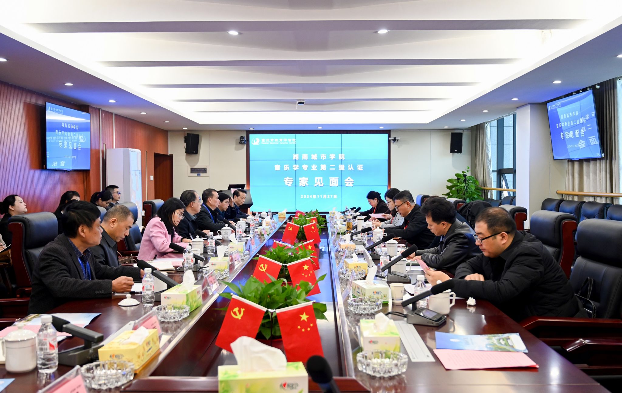 本网讯 11月27日上午,taptap点点音乐学专业第二级认证专家见面会在办公楼一会议室召开。专家组全体成员,校长何振、副校长雷存喜出席见面会。