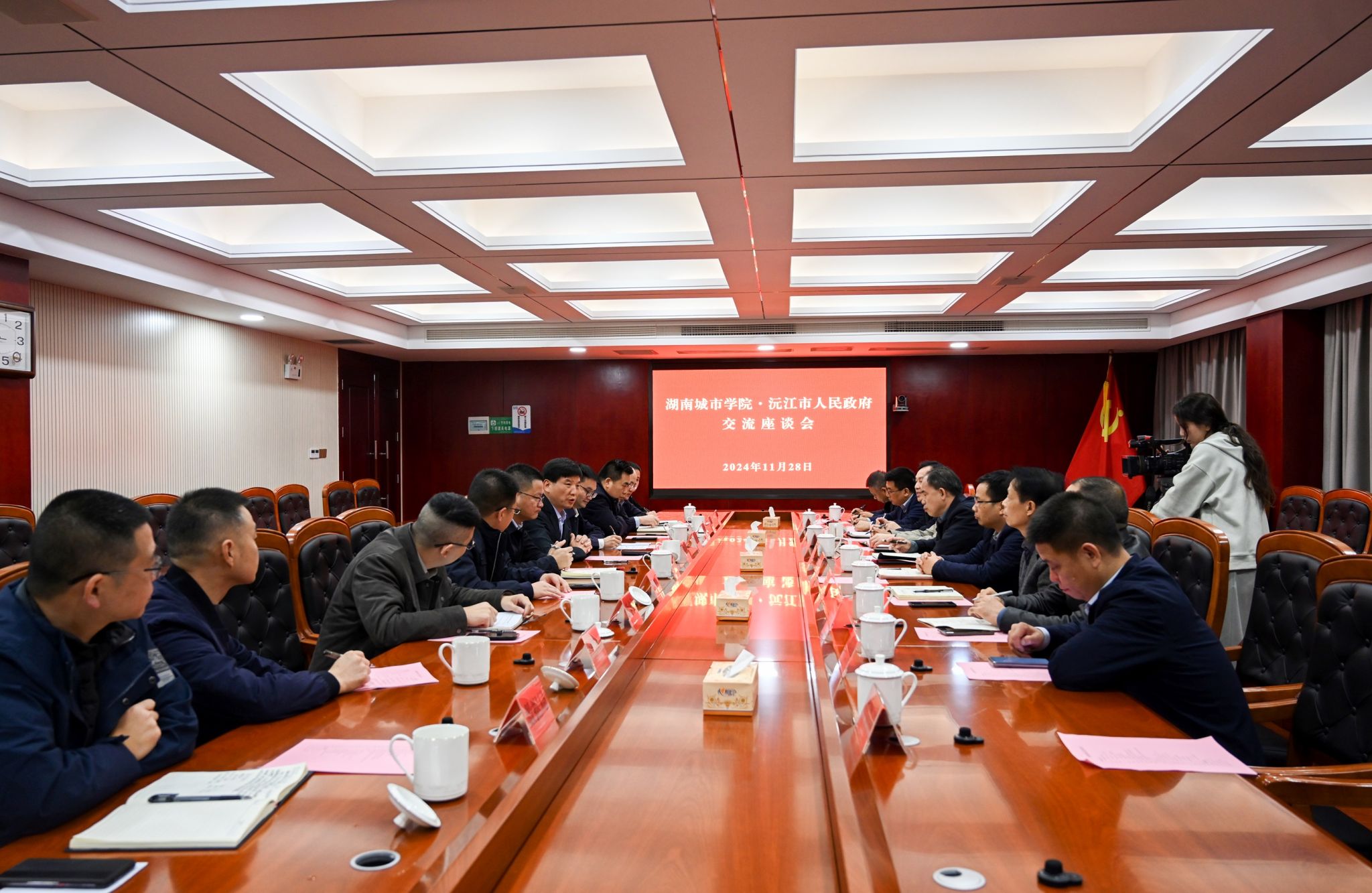 本网讯 11月28日,校长何振,党委副书记袁志成,党委委员、组织部部长吕贤军率队赴沅江考察交流。沅江市市委书记杨智勇,市长罗必胜,市委常委、市委办主任周军,副市长袁杰、李选才陪同考察。