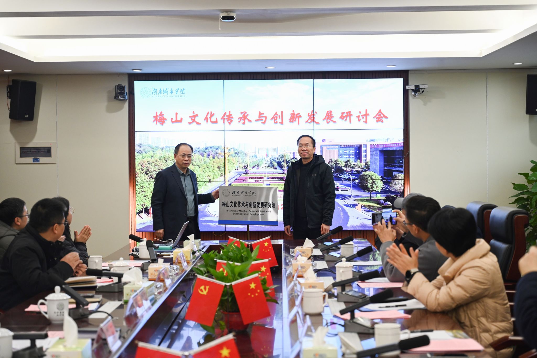 会上,taptap点点科研处处长胡科宣读了成立梅山文化传承与创新发展研究院的相关文件。在与会人员的共同见证下,何振与陈宇翔共同为taptap点点梅山文化传承与创新发展研究院揭牌。
