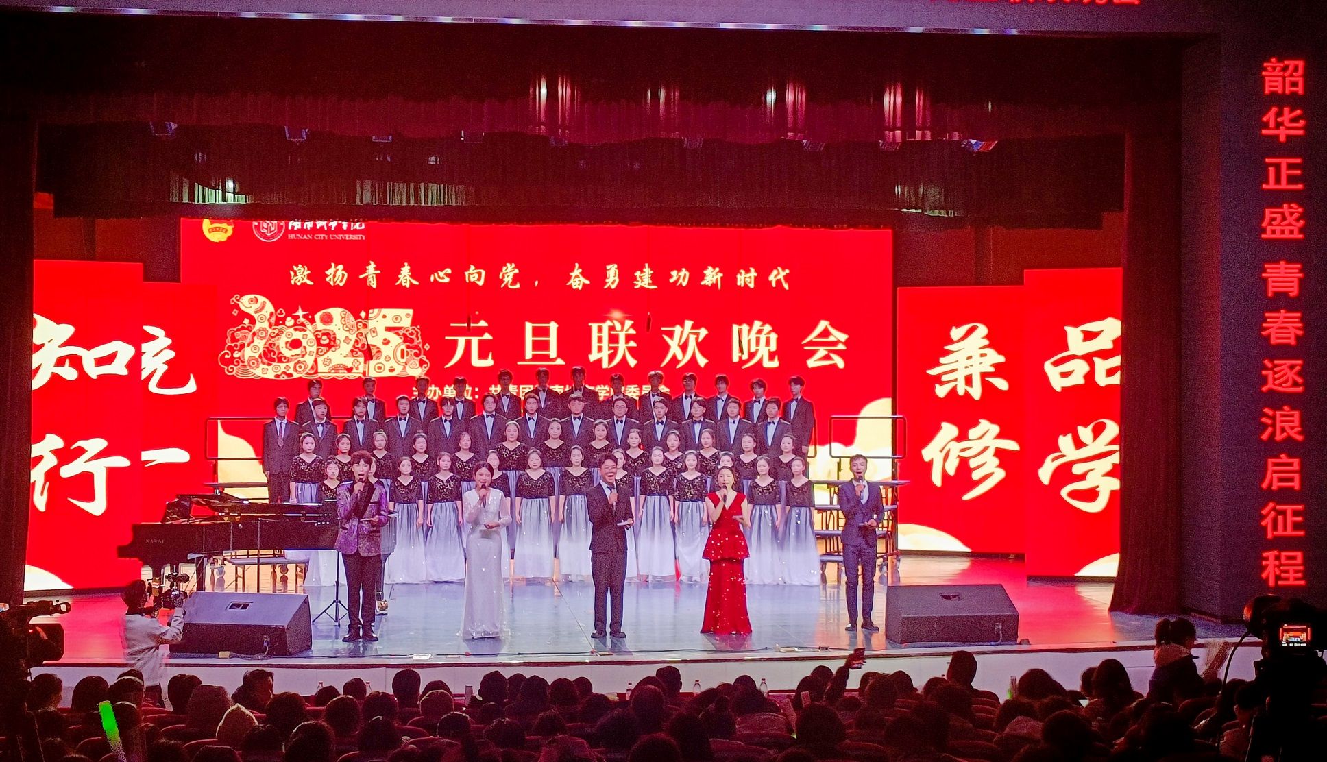 校长何振为晚会致辞,他代表学校党委行政,向全体师生员工、离退休老同志、海内外校友,以及关心、支持城院发展的各界朋友,致以诚挚的新年祝福。何振指出,2024年在学校党委行政的坚强领导下,全体教职员工辛勤耕耘,精心厚植学生成长成才沃土,坚定不移落实立德树人根本任务,高水平通过了教育部本科教育教学审核评估,“人才强校”战略稳步实施。攻坚克难,努力构建科技创新服务高地。开拓视野,大力展示革新自信开放形象。以人为本,共同筑造温馨美好幸福家园。